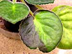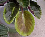 Caused by servere neglect and allowing to dry out. Once the plant is rehydrated this pattern may show up. Remove these leaves and keep the soil moist. |