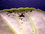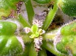 Yellow or Bronze center leaves Stunted, deformed or discolored |