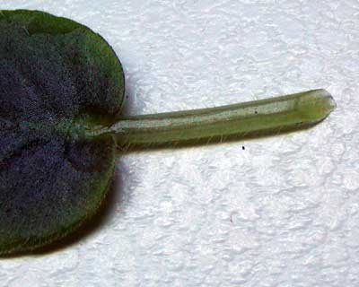 Try to leave about one inch of stem on the leaf
